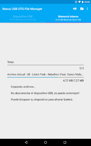 USB OTG File Manager for Nexus le permite abrir y copiar archivos desde cualquier dispositivo de almacenamiento masivo USB con archivo de sistema FAT32 o NTFS utilizando el puerto USB OTG de su dispositivo, tablet o teléfono.
