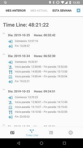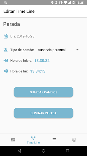 - Visualización de la jornada laboral con datos y paradas realizadas