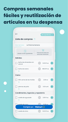 -Listas de compras generadas semanalmente para ayudarte a comprar alimentos y ahorrar tiempo