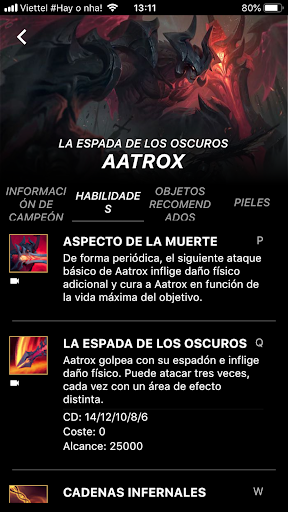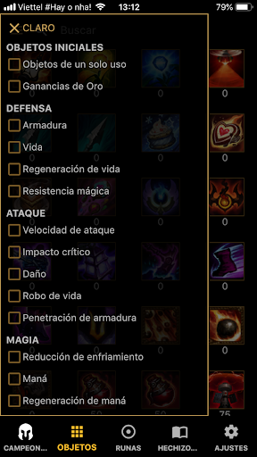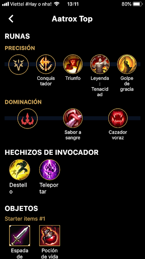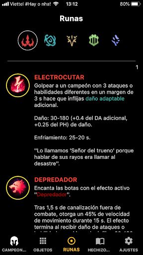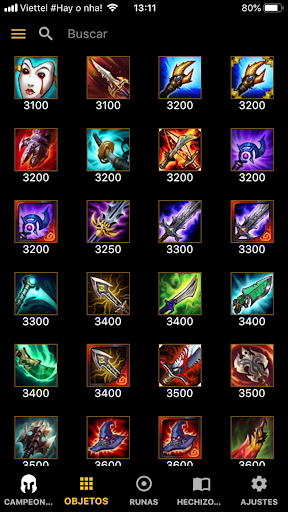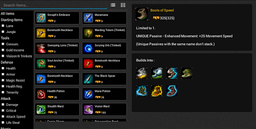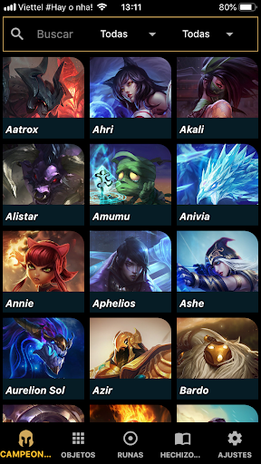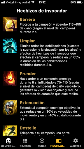 。Información de campeón, Información del objeto, Runas, Hechizos de invocador.