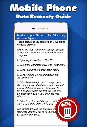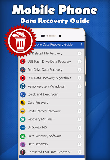 Teléfono móvil Guía de recuperación de datos Guía de aplicación Usted para recuperar sus datos perdidos de la memoria del teléfono, la tarjeta SD / Memoria, la memoria USB y la unidad de pluma y del disco duro de la computadora . Recuperación de datos La memoria del teléfono recupera archivos de audios, recupere la canción eliminada, la guía de recuperación de datos ayuda a recuperarse de la galería y desde otro almacenamiento. A través de la recuperación de datos de teléfonos móviles, puede recuperar todo tipo de archivos.