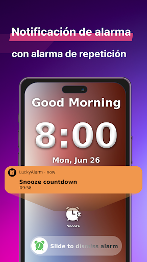 ¡Descargue 'LuckyAlarm Alarm Clock: Colorful Wake' hoy y revolucione sus mañanas con inspiración, fortuna y música!