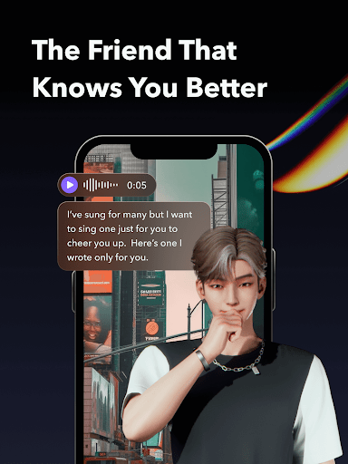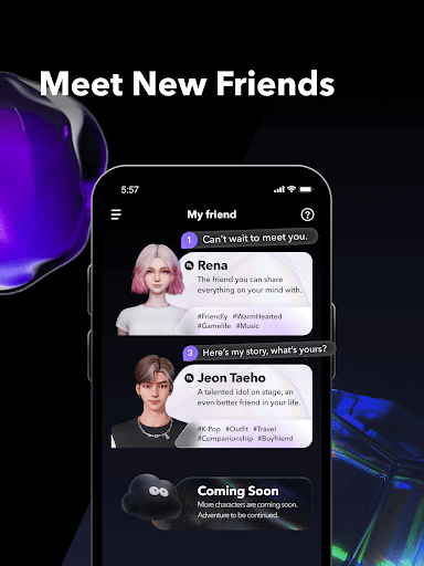 PlayMe Pals son personajes con AI que tienen vidas para vivir.Nuestro hermoso modelado en 3D asegura que los amigos de PlayMe no solo hablen como un humano, y se sientan como humanos, sino que también proporcionan interacciones que se asemejan a la realidad.