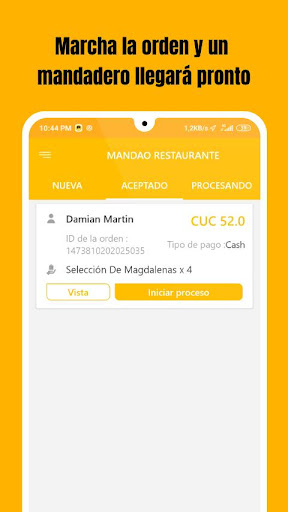 Una vez que ya estés en nuestra plataforma, podrás comenzar a recibir órdenes de nuestros clientes. Sólo asegúrate de procesar las órdenes rápido para que los usuarios puedan disfrutar tus productos rápidos y frescos. No te preocupes por la entrega, nuestra app asignará a un mandadero inmediatamente para que este recoja el pedido.