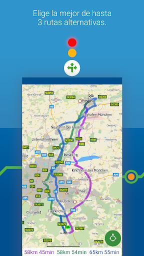 - Rutas alternativas: seleccione hasta 3 rutas precalculadas