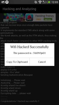 This is the wifi hacking application for fun. Make a fun with your friends and family. Look like a hacker. Make your friends fool that you are a hacker and going to hack wifi. This application will show you all available wifi networks and will click on it, a real like processing will start and at the end a password will be shown.