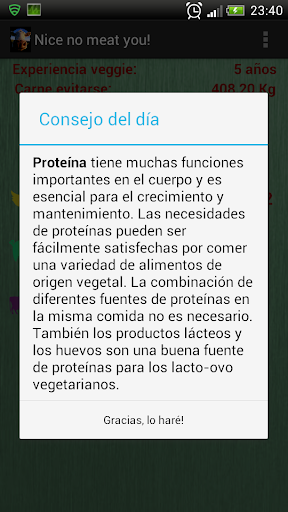 Complete la solicitud la posibilidad de mostrar un "Consejo del día" y un "Calendario de frutas y verduras de temporada," las dos ayudas para su dieta diaria vegetales.