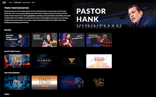One Voice TV (OVTV) es su plataforma #1 para conectar a las personas con la palabra profética del Señor a través de contenido digital premium de los pastores Hank y Brenda Kunneman y One Voice Ministries.