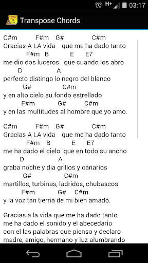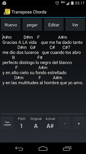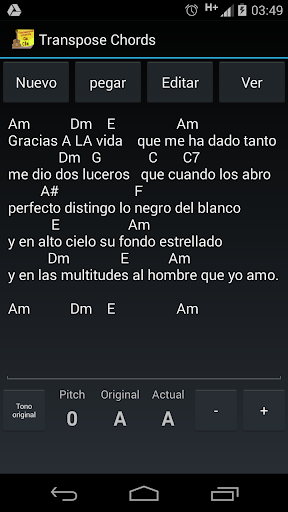 Con transpose chords tu podrás cambiar fácilmente los acordes de una canción, tan solo escribe o pega el acorde y estarás listo para cambiar el tono a tu gusto.