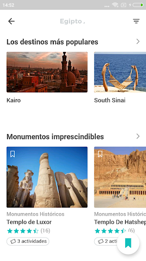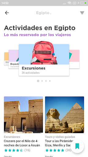 ➢ En la sección 'Actividades' podrás encontrar los mejores tours y excursiones en Egipto.