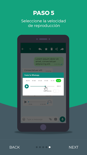 - Acelera o reproduce los mensajes de audio y la música hasta en 6 velocidades diferentes.