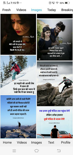 Cada vez que se actualiza el amor, el estado romántico y Shayari de categorías como lo Ve Ke Fande, Mohabbat Dil se, Meri Jindagi, Bas Tum Aur Mai, Ishk Mohabbat, etc.