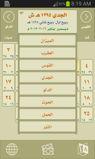 - قائمة تحتوي على تواريخ أيام الرواتب بالتقويم الهجري الشمسي للسنة الحالية في التطبيق ومايقابل هذه التواريخ في تقويم أم القرى والميلادي