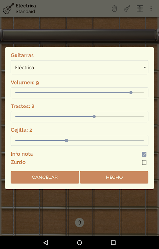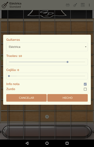 Guitar Droid lite está pensada también para zurdos y es completamente configurable: