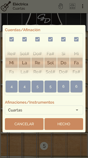 Puedes elegir entre 2 afinaciones alternativas y 2 instrumentos preconfigurados o crear el tuyo propio.