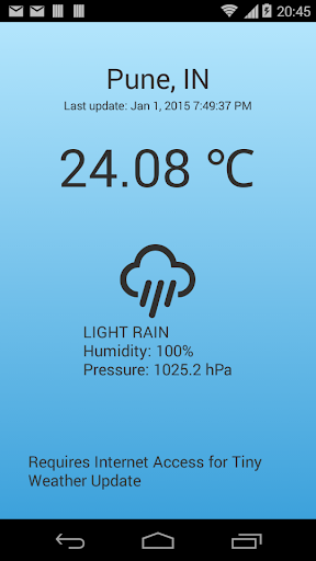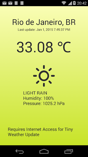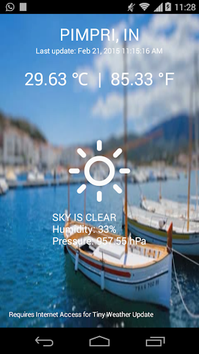 Informe climático se genera en base a la ubicación de su dispositivo . Satélite de la región se selecciona para obtener informe del tiempo exacto, pero dependiendo de la disponibilidad y ubicación de su estación meteorológica que accede puede producir algún resultado diferente de lo esperado.