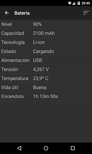 ·La batería: nivel de carga, salud, temperatura...
