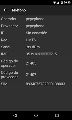 ·Telefonía: intensidad y tipo de señal, IP externa, datos de la SIM...