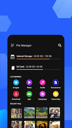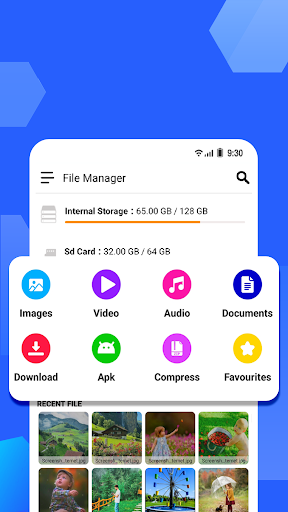 Management All files: Management image, video, audio, APK, download, document, Compress, In addition to moving files of interest to favorites
