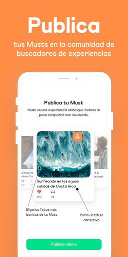Selecciona las mejores fotos para tus “musts”, ponle un título atractivo con una descripción simple y directa. Asigna diferentes categorías y etiquetas para los distintos “musts” que compartas para que otros los encuentren fácilmente.