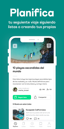 Agrupa tus “musts” en “listas” por temas y ubicaciones específicas (por ejemplo “El mejor bar de almuerzos en Barcelona” o “Mi itinerario de 5 días en Islandia”).