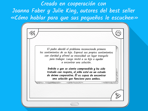 Parenting Hero ayuda a los padres a formar relaciones alegres con sus hijos haciendo un juego de roles de muchas situaciones comunes, viendo los cómics animados dibujados a mano y eligiendo sus respuestas a los problemas. Fue creado con los autores de «Cómo hablar para que sus pequeños le escuchen» – Joanna Faber y Julie King. El libro es una continuación de la serie mundial de bestsellers (3 millones de copias vendidas, 30 idiomas). El año pasado este libro en particular fue publicado en Estados Unidos y viene a muchos otros países en los próximos meses. Queremos ofrecer esta aplicación como un producto premium.