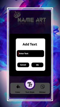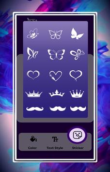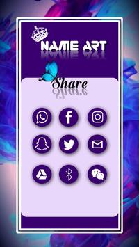 Esta aplicación utiliza estilos de texto basados en el estilo de fuente, y estas colecciones de fuentes le brindan mucha experiencia en el diseño de fotos geniales e increíbles con sus nombres favoritos con hasta 30 elementos para elegir y agregar estilos para cada fuente. Hágalo. En su diseño de nombre. Para mejorar el diseño de su nombre, agregue una calcomanía de su catálogo al nombrar su diseño artístico. Guarde esta foto en el directorio de su aplicación para compartir sus fotos favoritas con amigos, familiares y seguidores de las redes sociales, o generalmente en su propio muro de redes sociales. Compartir. Si desea agregar más texto y pegatinas o marcos para tomar fotos desde fuera de la aplicación y rediseñarlas, simplemente tome estas imágenes de su galería o tome un selfie y agregue texto como pegatinas para mejorar su diseño.