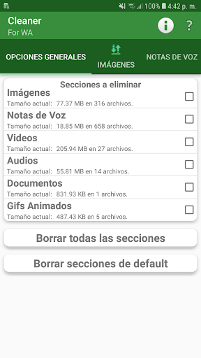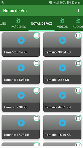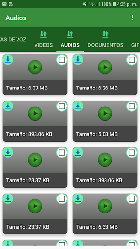 Con esta aplicación tu puedes ver los archivos que has recibido en WA. Desde aqui tu puedes borrar archivos o respaldar archivos importantes para tí a tu tarjeta de memoria. Esta aplicación te permite revisar imagenes, videos, audios, notas de voz, documentos y gifs.