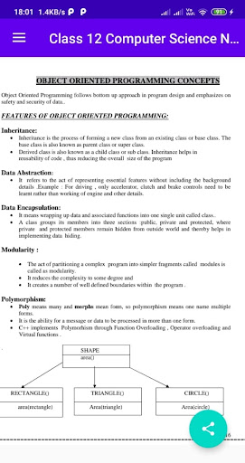 In this app you will find Notes for class 12 Computer Science.