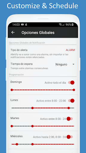 Puedes silenciar los sonidos de las notificaciones de cualquier aplicación y luego controlar cuando van a sonar desde Alertify.