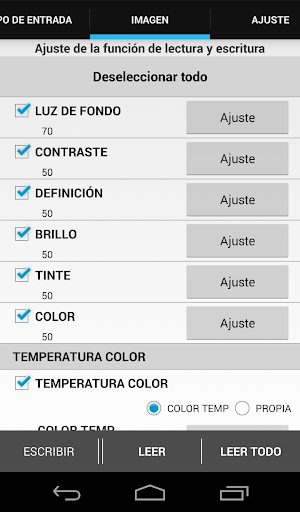 • Se leerán todas las opciones cuyas casillas de verificación estén marcadas. Los elementos que se van a escribir son aquellos que están activados y cuyas casillas de verificación han sido marcadas. Los elementos deshabilitados no se escribirán incluso si sus casillas de verificación se encuentran marcadas.