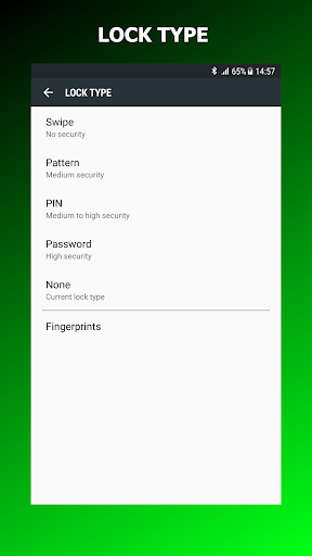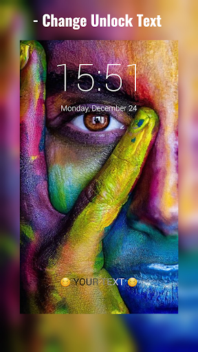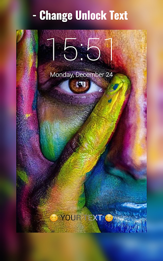 Sólo debe activar la configuración de pin en esta aplicación y crear su propia contraseña, pin o patrón para desbloquear la pantalla del Teléfono. También puede cambiar el texto de bloqueo, fondos de pantalla, formato de tiempo y mucho más.