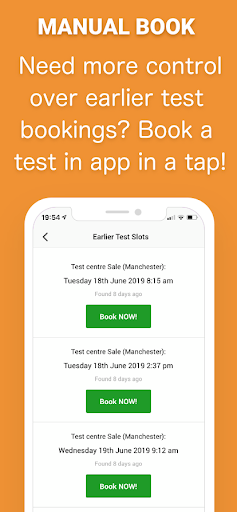 Descargue la aplicación e inicie sesión con sus datos y nosotros ' LL¡Empiece a buscar pruebas de conducción anteriores de inmediato!Para mejorar sus posibilidades de obtener una prueba de conducción anterior, habilite la reserva automática seleccionando sus fechas de prueba preferidas.