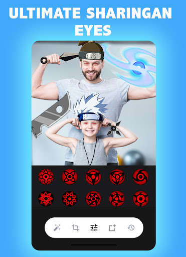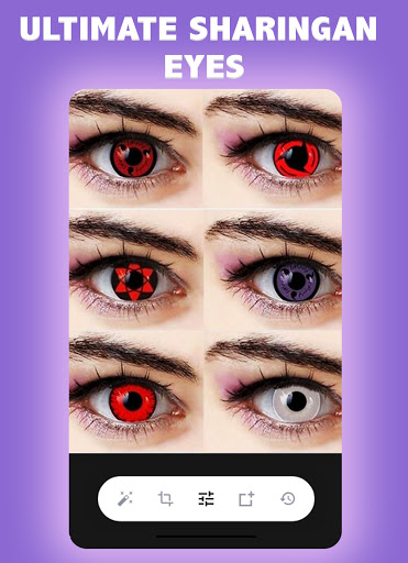 Do you like animes character with cool sharingan eye? Enjoy editing your own sharingan eyes with this anime app.