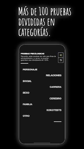 ¿Tienes un minuto libre? Echa un vistazo a la aplicación y descubre los mejores aspectos de tu carácter, si tus nervios están en orden o más sobre tu relación con el sexo opuesto. Tenemos más de 100 pruebas divididas en 9 categorías, y aquí están las más interesantes: