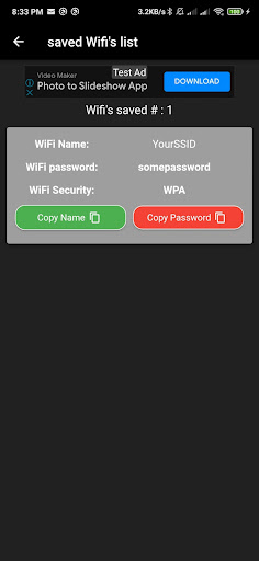 Wifi password displays the passwords .