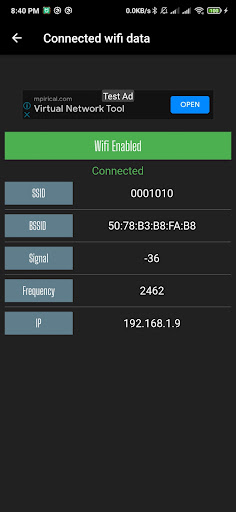 wifi analyzer to display connected wi-fi information like wifi ssid network, ip address , and wifi-related information.