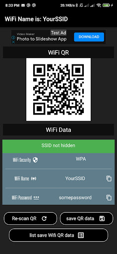 WiFi QR password Scanner just scans to show the name and password of the scanner QR