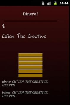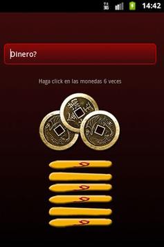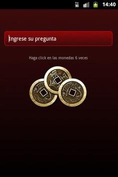 El App calcula el hexagrama según el método de las monedas. Para formar el hexagrama, haga click en las monedas 6 veces y se generarán aleatoriamente númeos que corresponden a las sumas de 2 2 2=6; 2 2 3=7; 2 3 3=8 y 3 3 3=9. El hexagrama formado se mostrará en la pantalla y de inmediato aparecerá el resultado. En caso que entre los numeros aparezcan los numerous 6 y 9 al final se mostrará el hexagrama del futuro, la anunciada mutación.