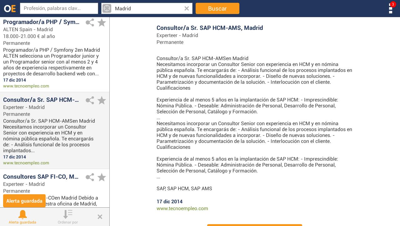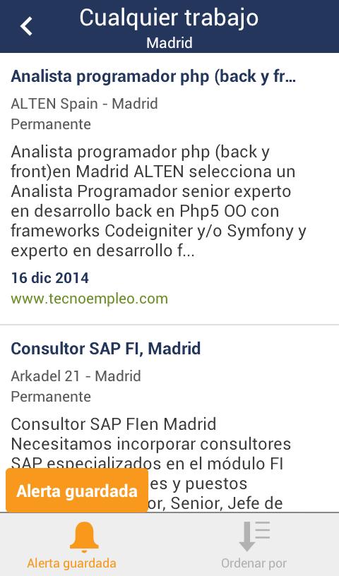 - Buscar anuncios de empleo por medio de palabras claves, ubicación, empresa