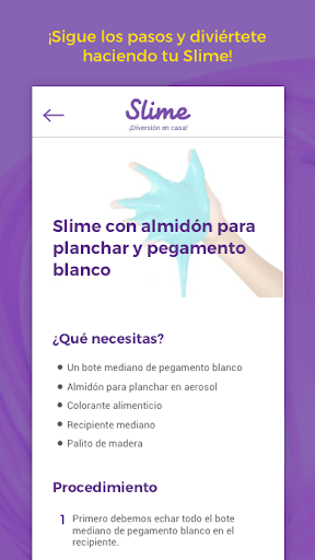 ¿Cómo hacer un slime casero? Ahora podrás hacer tu propio Slime casero, sin bórax y de varios estilos como antiestrés o fluffy. Diviértete en casa con tus amigos y familiares creando Moco de gorila, de muchos colores, texturas, formas y seguramente pasarán momentos increíbles. No sabes como hacer Slime, no te preocupes en esta app aprenderás los mejores slimes, podrás aprender de manera muy fácil como hacer slime. Quieres hacer slime de agua? Aqui encontraras tus mejores recetas de slime
