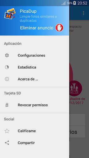 PicaDup está especializado en el tema de duplicados. Las imágenes inútiles se pueden eliminar para ahorrar espacio en su dispositivo y / o tarjeta SD.