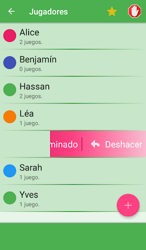 Puedes tener tantos jugadores registrados como quieras, pero los juegos están limitados a 6 jugadores. Puede guardar todos sus juegos o eliminarlos con un simple gesto.