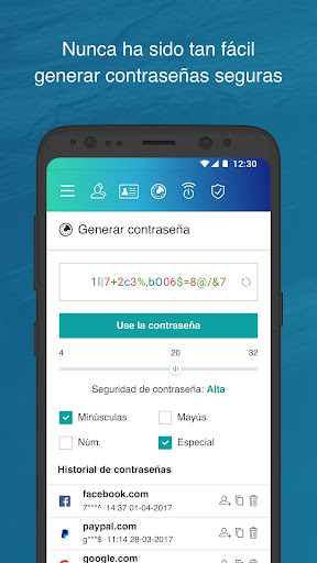 • Genera contraseñas fuertes con algoritmos de encriptación de grado militar.
