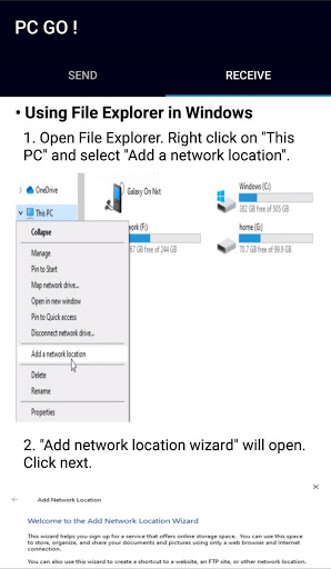 Para acceder a sus datos en la PC, use el Explorador de Windows o escriba la URL generada en su navegador favorito.