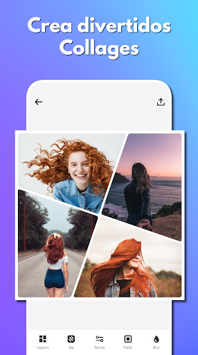 - Realiza divertidos y creativos collages con tus fotos, agrupa tus fotos con nuestras plantillas preestablecidas y realiza los ajustes necesarios con todas las herramientas de este poderoso editor de fotos.