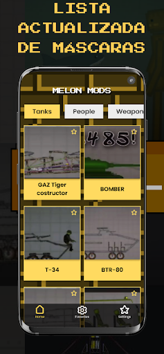 Mods for Melon Playground es una aplicación con una gran lista de diferentes modificaciones, complementos, herramientas y diferentes elementos para tu juego. Puede actualizar su caja de arena con diferentes pistolas y armas, autos y tanques, edificios y muebles.
