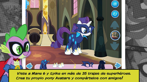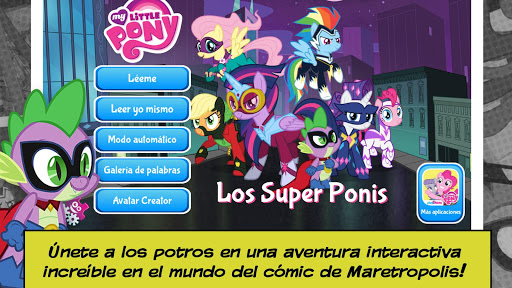 ¡Leer un libro te puede transportar a cualquier lugar! ¡Eso es lo que Spike descubre cuando su cómic favorito lo transporta mágicamente a él y a los ponies a una batalla con una temible súper villana en medio de Maretrópolis! ¡Tus ponis favoritos cuentan ahora con nuevos súper poderes, pero tal vez haga falta un aliado especial para salvar su día! ¡Si quiere ser un héroe, Spike debe usar sus propios poni poderes... ¡y tal vez sea un poder que tu también puedes encontrar en ti mismo!