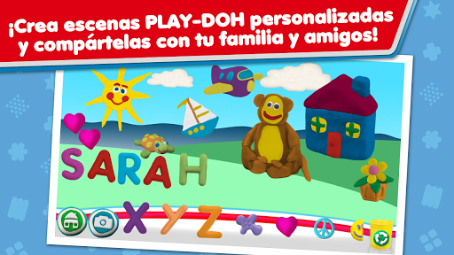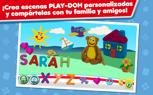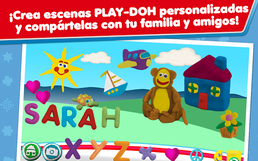 Crea tus propias escenas PLAY-DOH con tus creaciones PLAY-DOH gratuitas en la zona para crear y compartir. Una vez allí, puedes disfrutar de todos los objetos animados y coloridos que crees al avanzar por las letras del abecedario. Selecciona tu fondo favorito y da vida a tus escenas de PLAY-DOH con imágenes personalizadas. Guarda tus creaciones en tu smartphone o dispositivo táctil y compártelas con los demás.