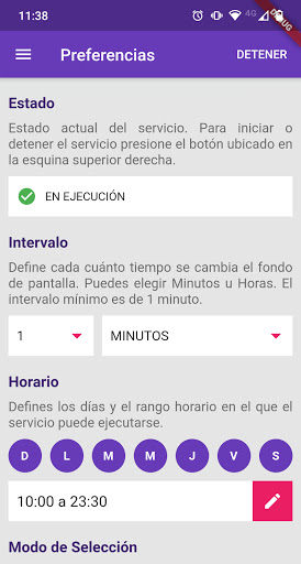 * Intervalo: cada cuánto tiempo se va a cambiar el fondo de pantalla. Puede ser minutos u horas.